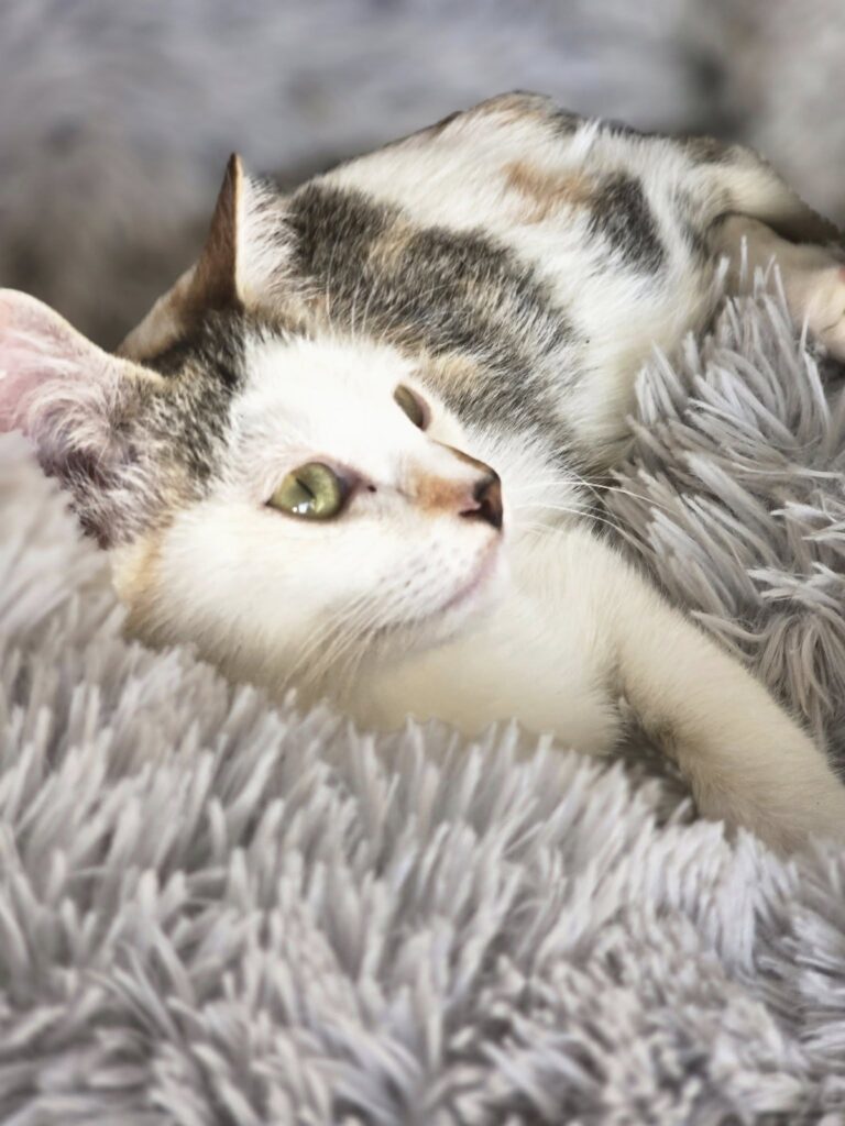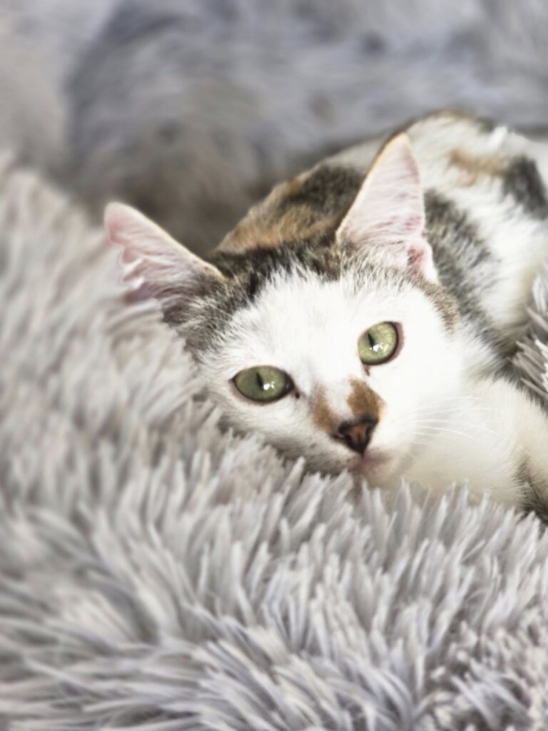 Apache est une adorable chatonne encore un peu timide mais une fois en confiance une petite boule d Amour, joueuse et câline